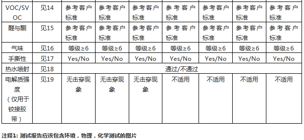 15. 酮與醛的排放. 根據(jù)?應(yīng)該根據(jù)主機(jī)廠的要求來測(cè)試。只需要測(cè)試汽車車身內(nèi)部應(yīng)用的膠帶。