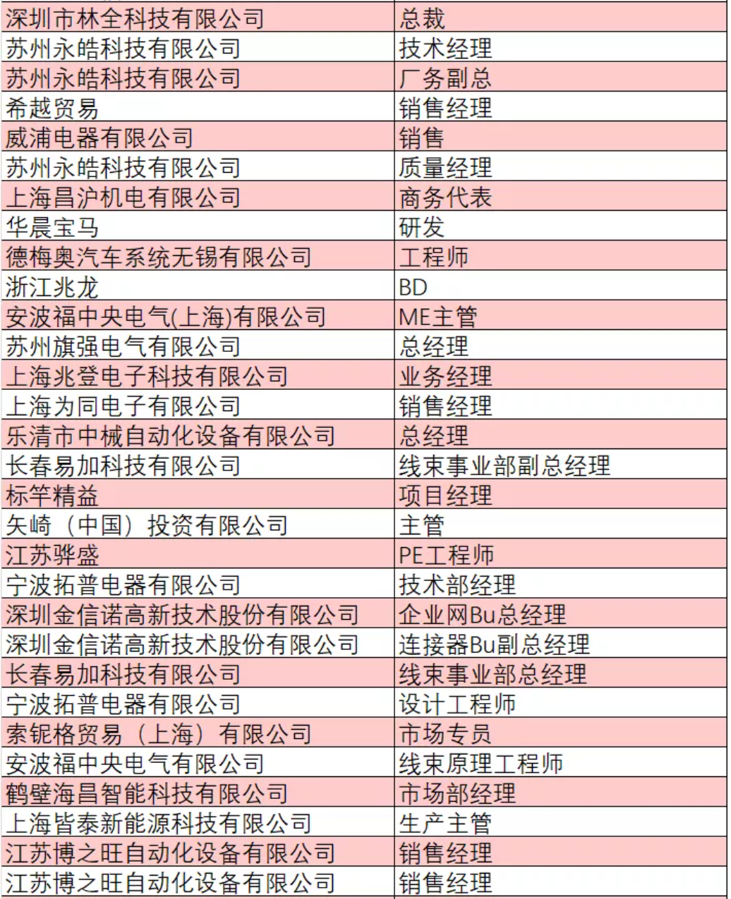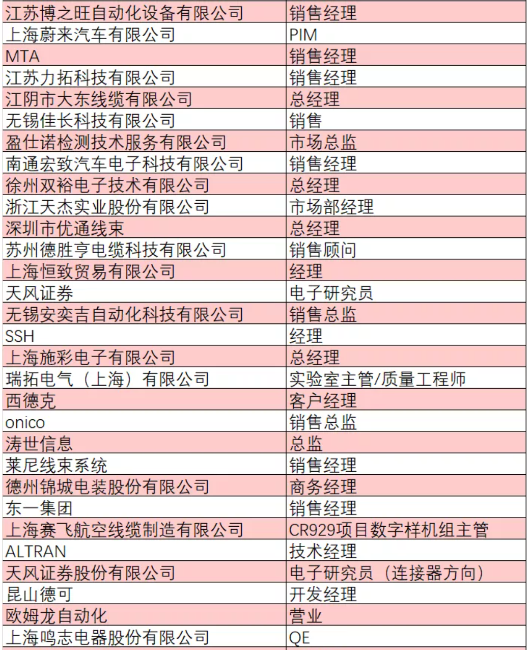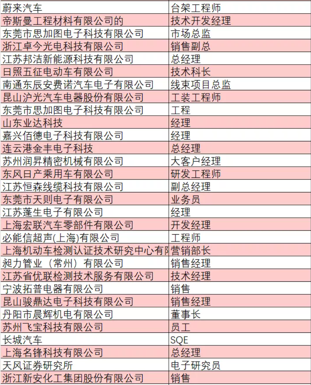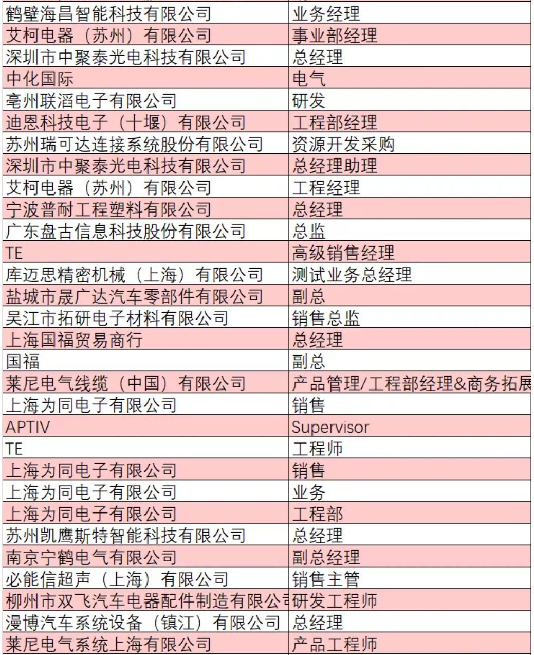 部分已報(bào)名人員企業(yè)與職位