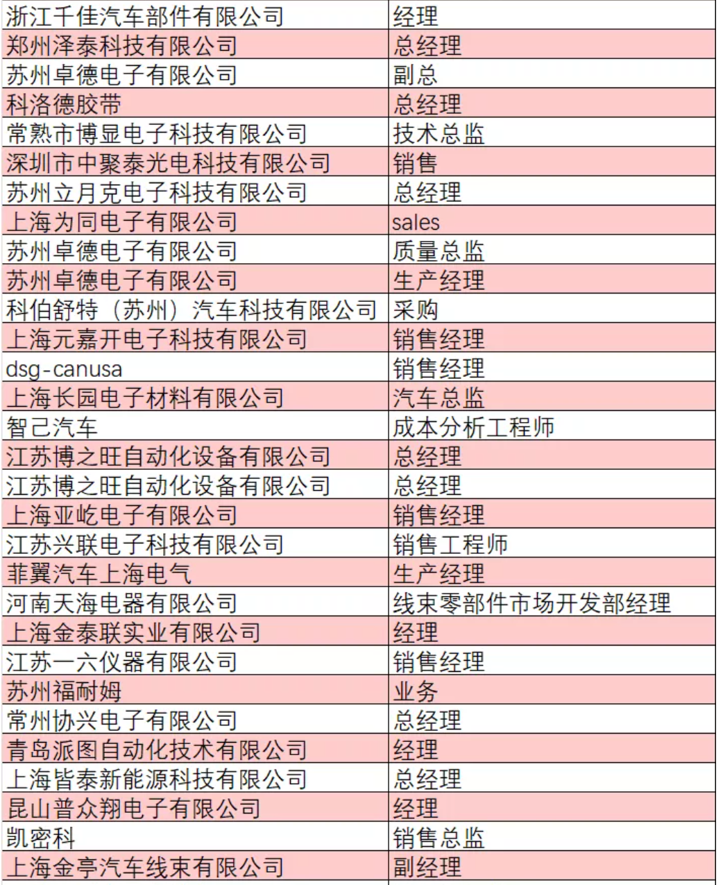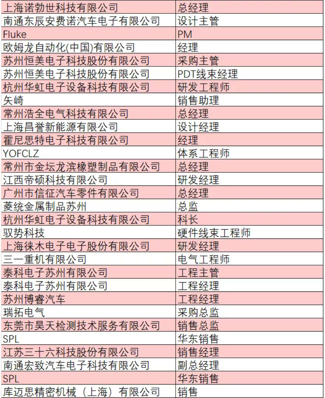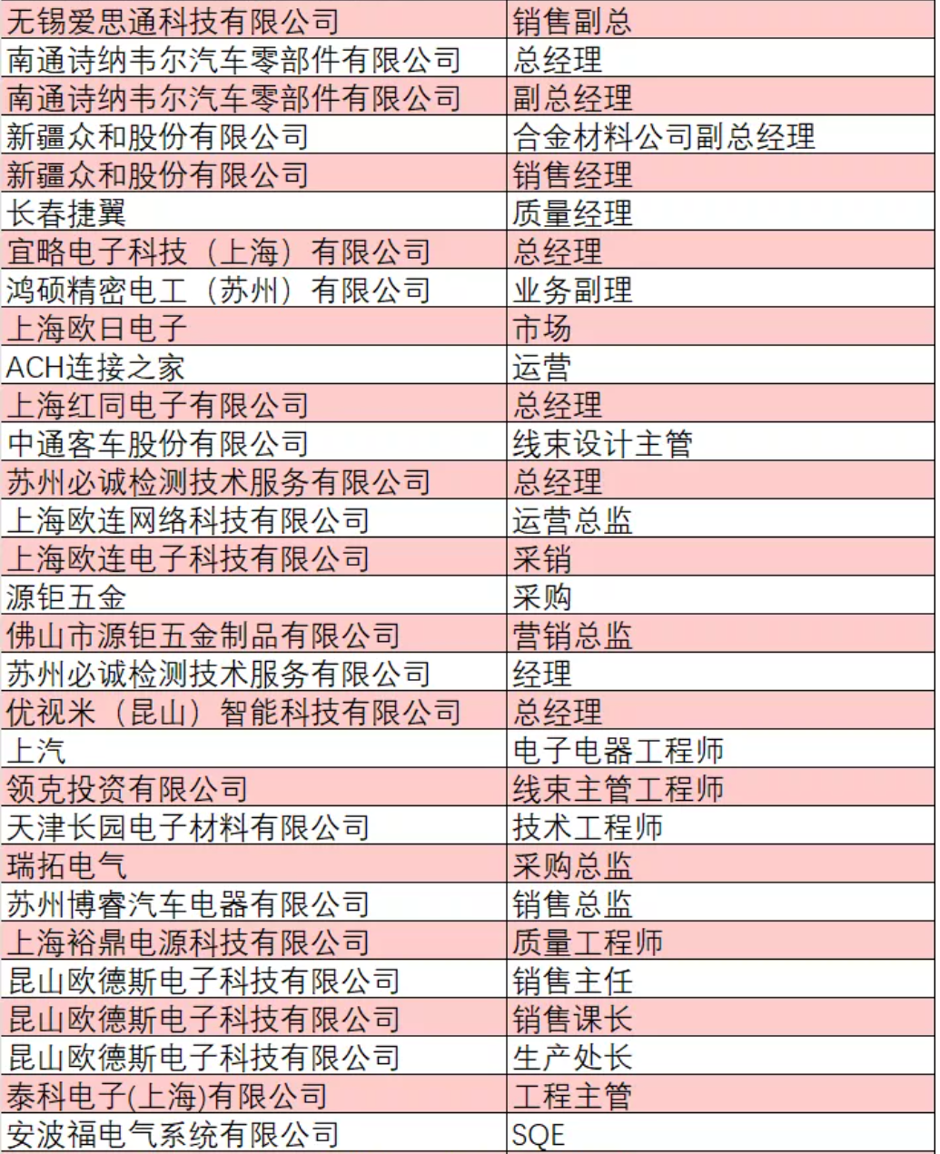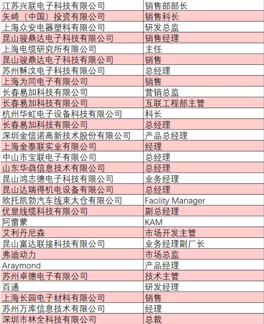 部分已報(bào)名人員企業(yè)與職位